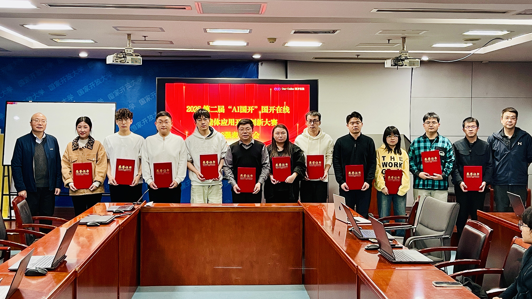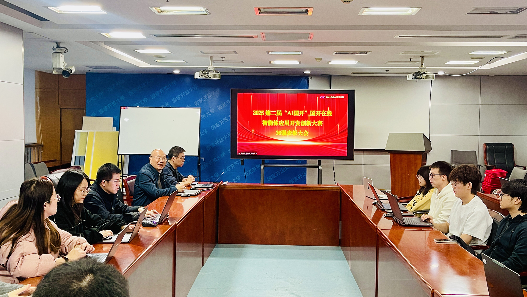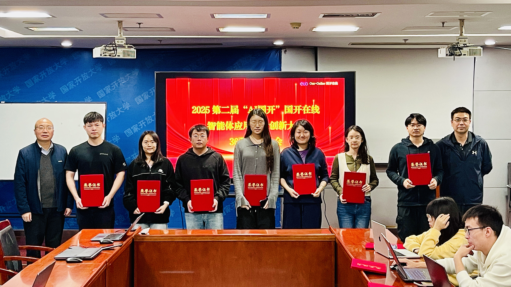 为进一步夯实公司人工智能技术创新基础,激发全员研发活力,在2025年10月24日程序员节当天,第二届“AI国开”国开在线智能体应用开发创新大赛初赛36强颁奖活动在五棵松校区206会议室隆重举行。研发中心总监陈林顺老师、人工智能教育应用研究院副院长智勇老师出席活动并为入围选手颁奖,各部门研发骨干、参赛代表共同见证荣耀时刻。
